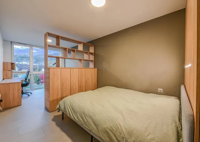 Das Stadtzentrum von Sion kann man innerhalb von 15 Minuten zu Fuß erreichen. Die Festungskirche von Valère liegt unter anderem circa 25 Minuten zu Fuß entfernt. Das Aparthotel befindet sich in circa 1 km Entfernung vom Geschichtsmuseum. Für Fernreisende ist der Flughafen Sitten in 10 Minuten mit dem Auto zu erreichen.